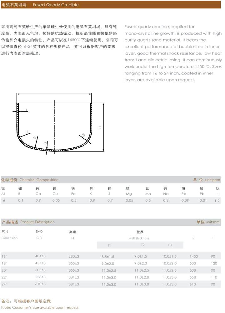 我对您的单晶用石英坩埚产品感兴趣,请发具体的信息及报价,谢谢!